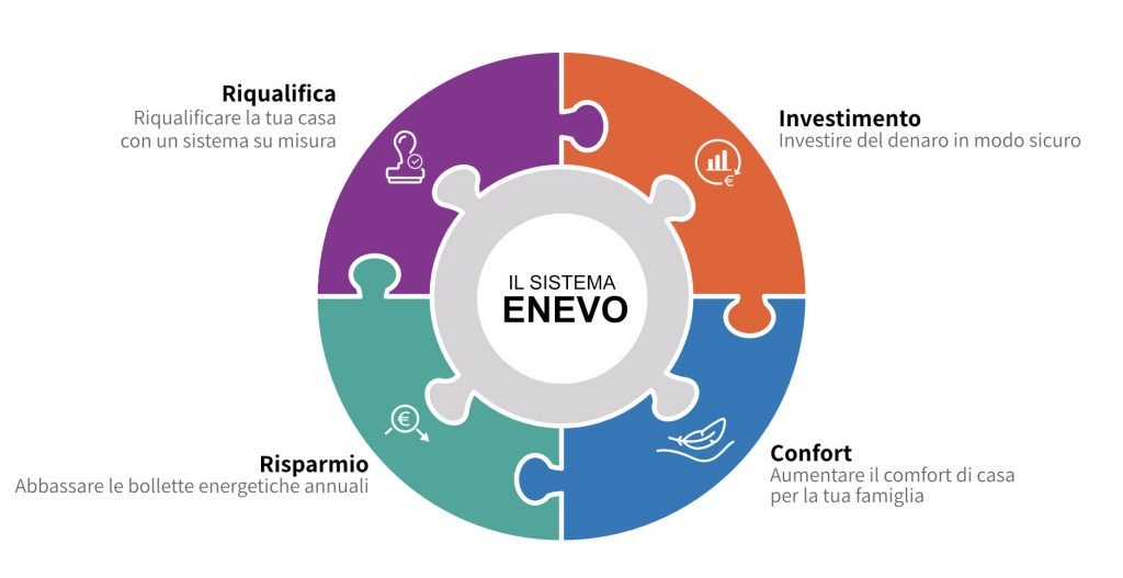 il mondo delle Energie Rinnovabili lo abbiamo vissuto come un grande puzzle da costruire a beneficio delle Famiglie che, proprio come te, cercano il sistema piu sicuro per riqualificare la propria Casa. Per questo, abbiamo messo a punto un sistema in grado di collegare ogni “tessera specializzata”, al fine di realizzare le tue principali necessita’: